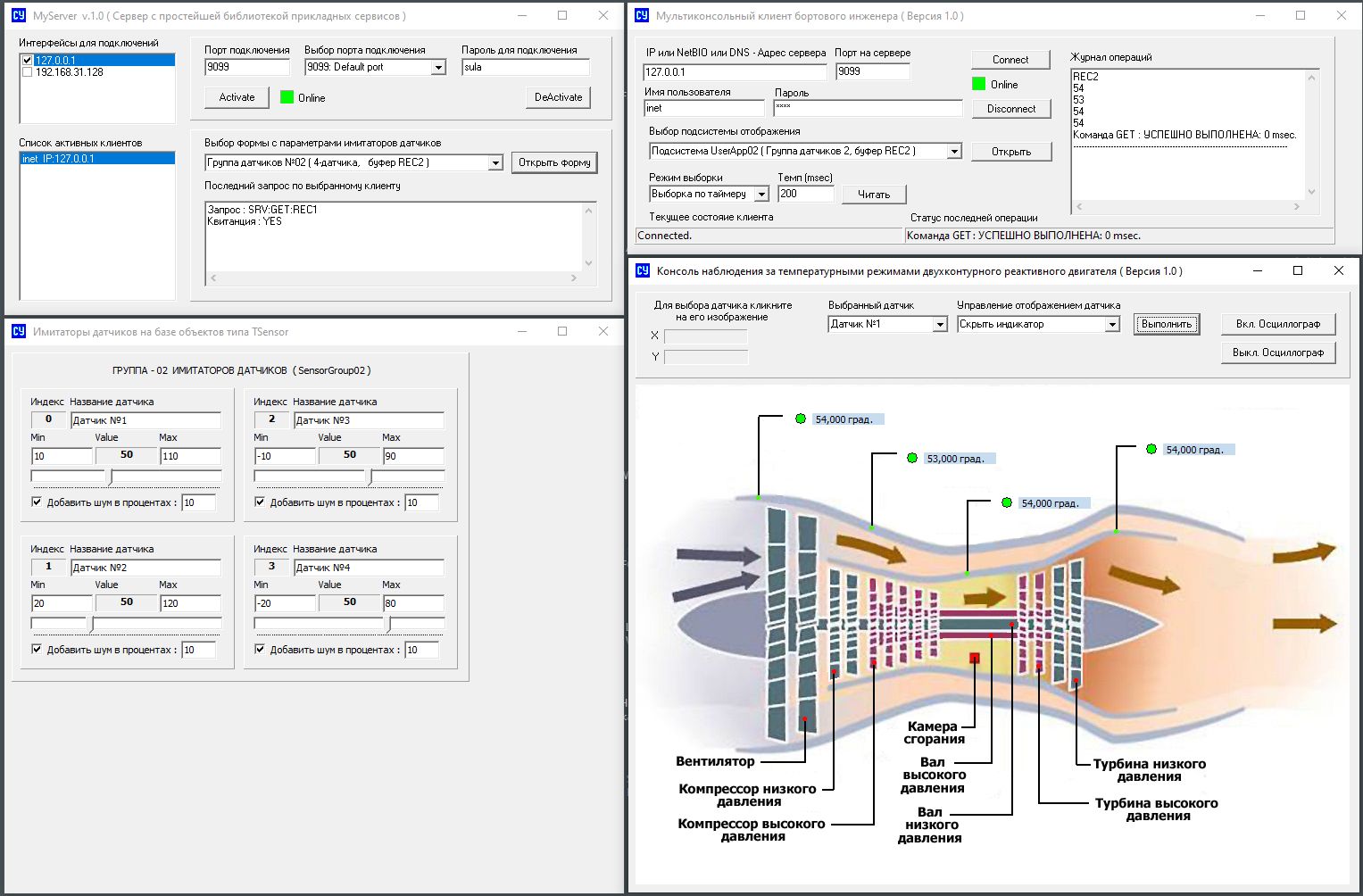 Для студентів, які опановують управління сучасними технічними об'єктами (особливо об'єктами, розподіленими у просторі), важливо мати знання з архітектури розподілених комп'ютерних мереж та систем. До оптимальних архітектурних рішень для керування технічніми об'єктами можна віднести ізольовані локальні комп'ютерні мережі (тобто, мережі без виходу інтернет) і клієнт – серверне програмне забезпечення. У такій архітектурі ізоляція мережи значно знижує ризики зовнішнього втручання в систему, сервери виступають у ролі інформаційно-вимірювальних та керуючих підсистем, а клієнти реалізують задачі відображення інформації для персоналу та управління персоналом як підсистемами, так і системою загалом. Стартові системи Client-Server Як згадувалося, роботи студентів використовували готові (стартові) програми. Усі стартові програми представлені SOURCE-текстами (папки SOURCE) та готовими до виконання файлами (папки READY) відповідно в складі кожної програми. Якщо на вашому комп'ютері не встановлено Delphi, то додайте в паки READY кліенту та серверу додаткові бібліотеки (rtl70.bpl, vcl70.bp, vcljpg70.bpl, qtintf70.dll). Посилання на ці бібліотеки наведено в розділі «Анотація» на цій сторінці.